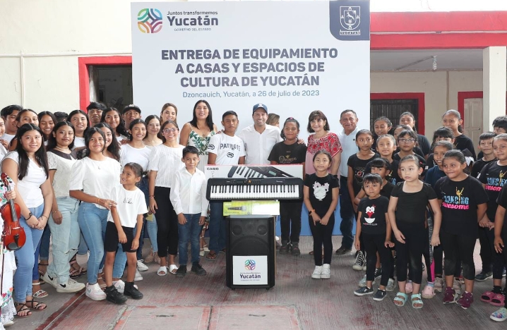 Ante la titular de la Secretaría de la Cultura y las Artes (Sedeculta), Loreto Villanueva Trujillo, Vila Dosal supervisó la operación del espacio cultural de esta demarcación, donde entregó un kit de equipamiento que consiste en un teclado, una bocina y dos micrófonos.