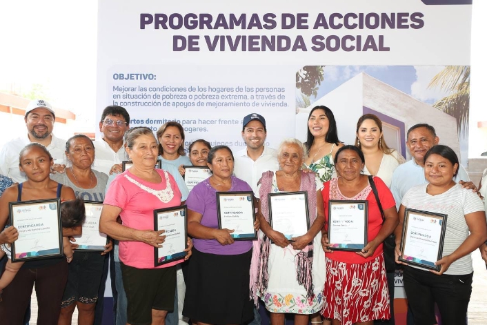 Acompañado del titular de la Secretaría de Desarrollo Social (Sedesol), Roger Torres Peniche, el Gobernador comenzó la distribución de 16 certificados para acciones de Vivienda Social, con el objetivo de reducir la condición de vulnerabilidad de las familias que más lo necesitan en la localidad.