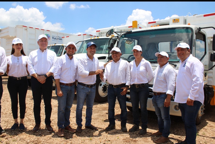 El gobernador del estado de Yucatán, Mauricio Vila Dosal hizo entrega de 4 cajas de transferencia, 2 tractocamiones, 1 contenedor, 2 minicargadores, 3 compactadores y camión roll off que estarán beneficiando a Mérida, Kanasín, Umán, Progreso, Tixpéual y Ucú.