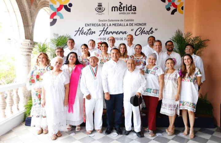 Finalmente, en el salón de Cabildo estuvieron además de las y los regidores, la síndica, Diana Canto Moreno; el secretario Municipal, Alejandro Ruz Castro y el director de cultura, Irving Berlín Villafaña. Asimismo, Jazmín López Manrique “Tina Tuyub”, Viuda de Don Héctor Herrera “Cholo” y Recipiendaria de la Medalla en el 2014; Francisco Ríos Ontiveros «Zapote», Recipiendario de la Medalla en el 2015; Narda Josefina Acevedo López “Chonita”, Recipiendaria de la Medalla en el 2016 Erik Ávila “Cuxum”, Recipiendario en el 2021, así como familiares del condecorado.