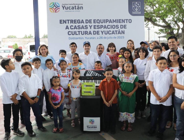 Posteriormente, el Gobernador y la titular de la Secretaría de la Cultura y las Artes (Sedeculta), Loreto Villanueva Trujillo, entregó a niñas, niños y adolescentes, que participan en las actividades del espacio cultural de esta demarcación, un kit de equipamiento que consiste en teclado, bocina y 2 micrófonos, para seguir impulsando acciones de sensibilización artística, orientadas hacia conservar el clima de paz y seguridad de Yucatán.