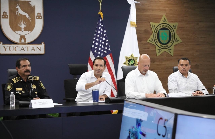 Ante el Alcalde de Mérida, Renán Barrera Concha, y la secretaria General de Gobierno (SGG), María Fritz Sierra, Vila Dosal indicó que desde el inicio de su gestión determinó 3 ejes de acción para fortalecer la paz en el estado, que son lograr una policía mejor equipada, mejorar las prestaciones de los elementos y apostar por la profesionalización, y hoy, a 5 años de eso, queda demostrado que estamos logrando esos objetivos y estamos mejorando los índices de seguridad.