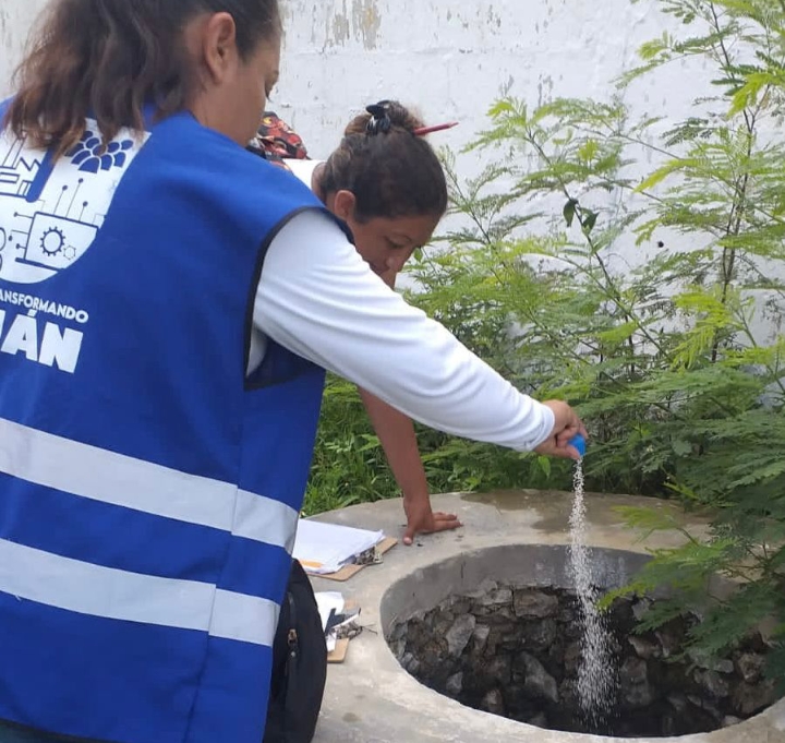 Desde el inicio de la jornada se han desplegado cuadrillas en diferentes comisarias, fraccionamientos y colonias aplicando abate en alcantarillas y domicilios particulares para matar las larvas que anidan en recipientes, sumado a estos trabajos se están fumigando escuelas y espacios públicos para mantenerlos libres de moscos.