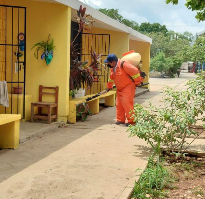 De manera conjunta se han aplicado los trabajos de fumigación en la Primaria El Niño Artillero, Primaria Rubén Darío, Primaria Sebastián Pavia, Preescolar Luis Rosado Vega, Preescolar Amado Nervo, Preescolar Bernal Díaz del Castillo, Preescolar Fernando Montes de Oca, Preescolar José Vasconcelos, Preescolar Maa Tubz Cen, La Primaria Tierra y Libertad de Itzincab, Primaria Manuel Mercader de Piedra de Agua, Primaria Primero de Mayo de Ticimul, Preescolar Inyaax Cambal de Xcucul Sur, el Preescolar Francisco Mujica, la Primaria Vicente Guerrero y Telesecundaria Juan Escutia de Oxcum, Telesecundaria Quetzalcóatl de Ticimul y Secundaria Técnica #77 de Itzincab.