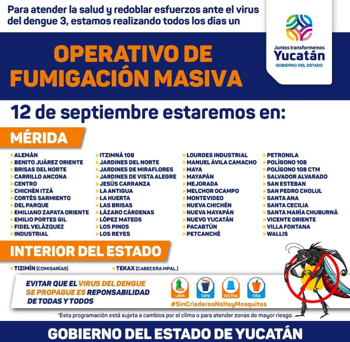 🔆Hoy martes 12 de septiembre habrá fumigación 🛻💨 en las colonias.