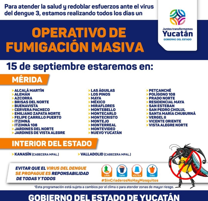 🔆Hoy viernes 15 de septiembre habrá fumigación 🛻💨 en las colonias.