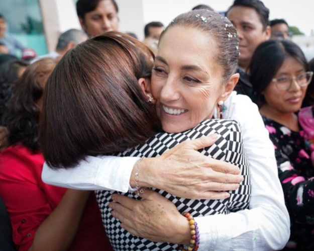 Entre porras, aplausos y al son del mariachi, Sheinbaum Pardo recibió de manos de mujeres de los pueblos originarios de la entidad , quienes portaban una bandera con los colores purépechas, algunas artesanías como un alhajero, bolsas, canastas de frutas, entre otros.