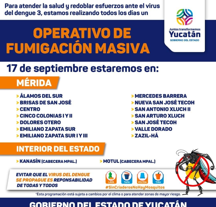 🔆Hoy domingo 17 de septiembre habrá fumigación 🛻💨 en las colonias.