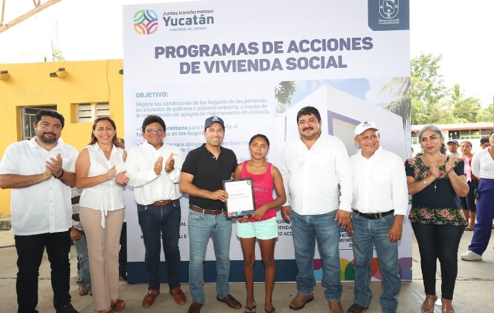 Acompañado del titular de la Secretaría de Desarrollo Social (Sedesol), Roger Torres Peniche, el Gobernador distribuyó de 12 certificados para acciones de Vivienda Social, con el objetivo de reducir la condición de vulnerabilidad de las familias que más lo necesitan en la localidad.