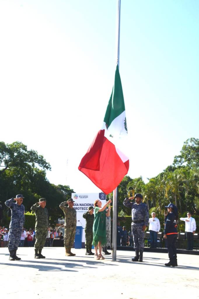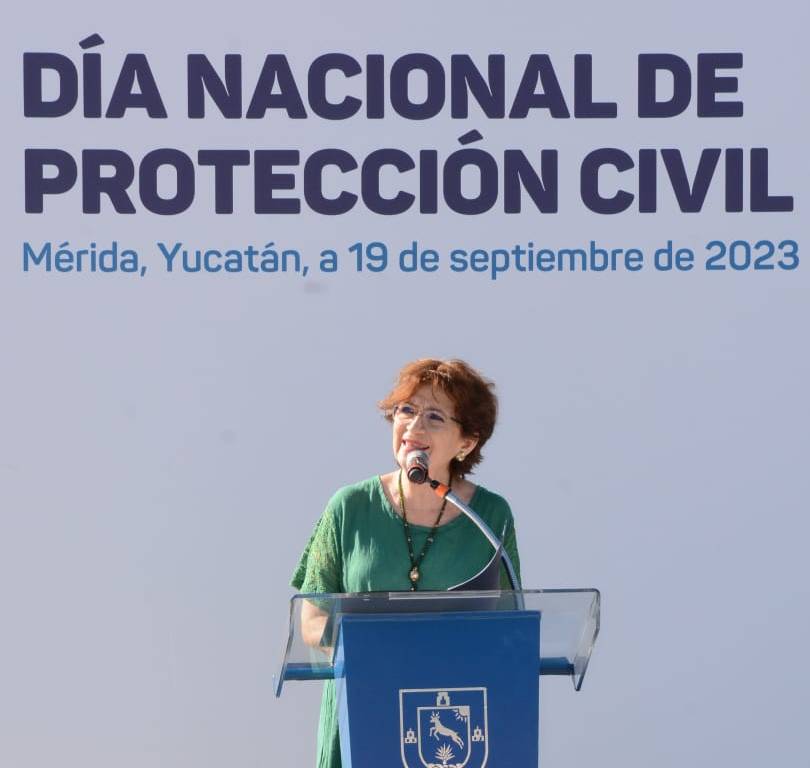 Mérida, Yucatán a 19 de septiembre de 2022.- Con un llamado a trabajar como un solo equipo para consolidar la cultura de prevención y participación ciudadana ante cualquier situación de riesgo o emergencia, la titular de la Secretaría General de Gobierno (SGG), María Fritz Sierra, encabezó la ceremonia conmemorativa del Día Nacional de Protección Civil.