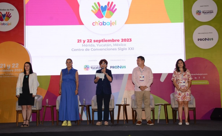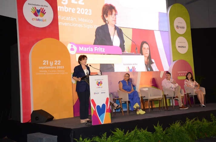 Mérida, Yucatán, 21 de septiembre 2023.- Desde Yucatán, se comparten experiencias, casos de éxito, mejores prácticas y promueven acciones integrales para contribuir con la construcción, preservación y fortalecimiento de la convivencia pacífica y el desarrollo sostenible de las sociedades, al ser sede de la Primera Cumbre por las Sociedades de Paz, Ch’abajel, encuentro que inauguró este día la titular de la Secretaría General de Gobierno (SGG), María Fritz Sierra.