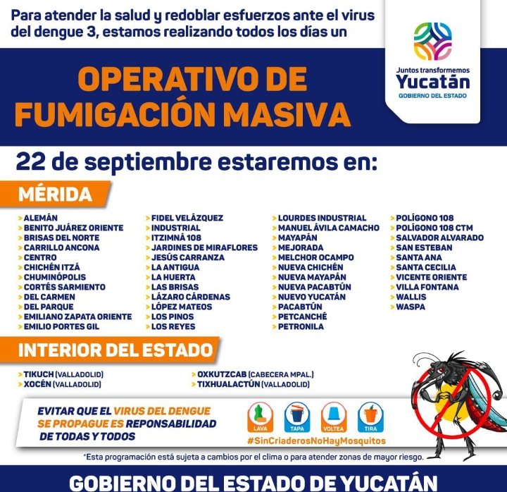 🔆Hoy viernes 22 de septiembre habrá fumigación 🛻💨 en las colonias.