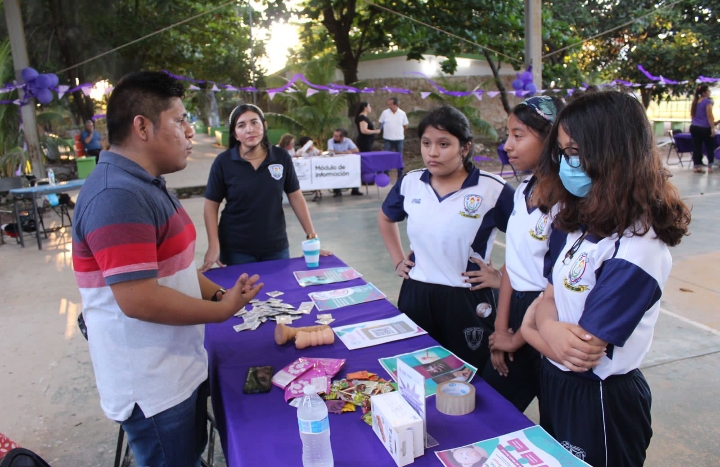 Reforzando la información sobre la prevención del embarazo adolescente se realizó la «Jornada Violeta» en el municipio de Umán con el objetivo de brindar asesoría oportuna a los jóvenes sobre temas de educación sexual.