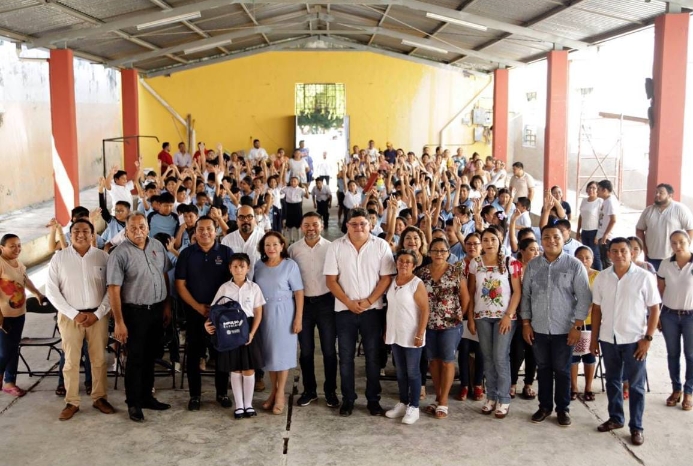 En Tecoh, en representación de Vila Dosal, el director general del Colegio de Bachilleres de Yucatán (Cobay), Marco Antonio Pasos Tec, realizó en días pasados la entrega de este importante apoyo a alumnos de la Escuela Primaria “Guillermo Palomino”, al tiempo que resaltó el compromiso y la visión del Gobernador con este tipo de programas que benefician no solo a las y los estudiantes, sino que también a la economía familiar, así como a los artesanos yucatecos que participan en la fabricación de las mochilas, zapatos, blusas, camisas y chamarras.