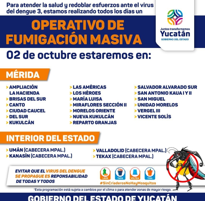 🔆Hoy lunes 2 de octubre habrá fumigación 🛻💨 en las colonias.