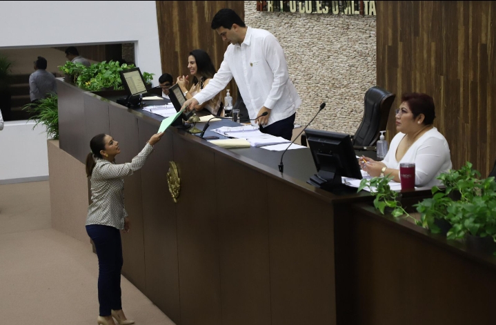 Posteriormente, la diputada Fabiola Loeza Novelo entregó una iniciativa para reformar el Código Penal del Estado referente a la actuación de las autoridades respecto a la legítima defensa.