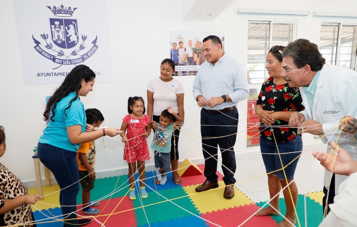 Ante beneficiarias y beneficiarios del lugar, Barrera Concha recordó que en 2009 el edificio funcionaba como el Centro Recreativo “Báaxal Káambal” (ludoteca) donde se impartían actividades artísticas a las y los niños de la zona, sin embargo, con la pandemia, se reorientaron los servicios para atender la salud mental con pláticas y actividades dirigidas a niñas y niños de entre 5 a 13 años de edad.