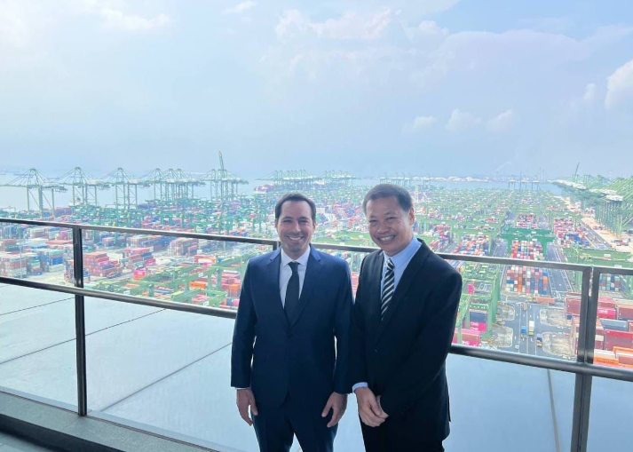 Singapur, 19 de octubre de 2023.- Para conocer el movimiento y buenas prácticas en materia logística que se puedan implementar con la ampliación del Puerto de Altura de Progreso, en aras de detonar el desarrollo económico, la industria, el turismo, y generar más y mejores empleos para los yucatecos, el Gobernador Mauricio Vila Dosal visitó el Puerto de Singapur, considerado como uno de los más grandes del mundo.