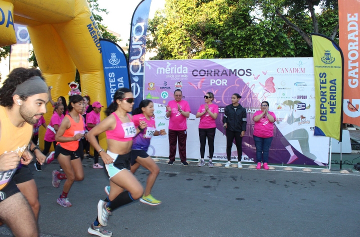 En representación del alcalde Renán Barrera Concha, la Jefa de Vinculación y Promoción Deportiva, Ana Fleites Chalé, dio el disparo de salida, junto a Naomi Peniche López, Presidenta Nacional de Canadem; Rosario Espadas Peniche, del comité organizador; y José Cantó Esquivel, Director del Instituto Tecnológico de Mérida.