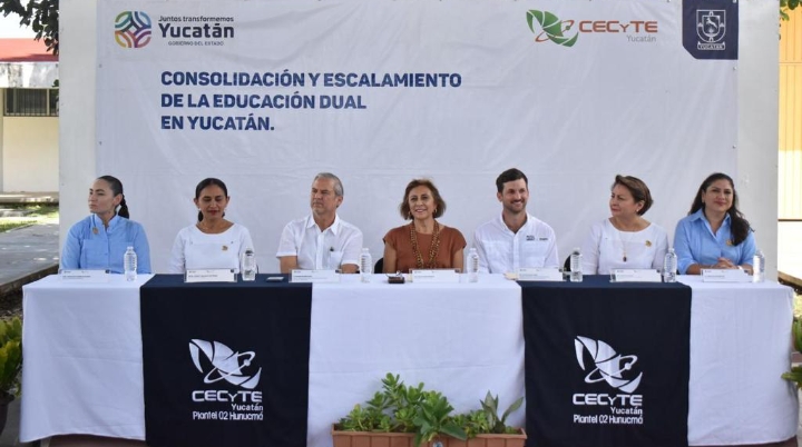 Mérida, Yucatán, 25 de octubre de 2023.- Un total de 30 alumnos del Colegio de Estudios Científicos y Tecnológicos del Estado de Yucatán (Cecytey) de los planteles de Hunucmá y Maxcanú realizarán estancias laborales en la empresa “Construcciones de Acero METALTEC”, como parte del programa de Educación Dual que impulsa el Gobierno de Mauricio Vila Dosal para que los jóvenes conozcan las buenas prácticas de la industria y academia, así como los beneficios y contribuciones de esta modalidad al desarrollo económico y social.