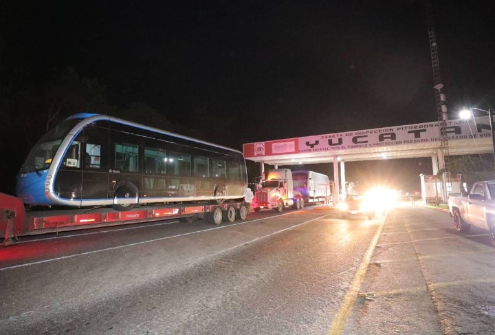 A las 18:40 horas de este miércoles, entraron a territorio estatal estos vehículos procedentes de la ciudad de Vigo, en España; mismos que se trasladaron por mar a Veracruz y siguieron su camino por tierra hasta llegar este día a Yucatán, cambiando para siempre el transporte público.