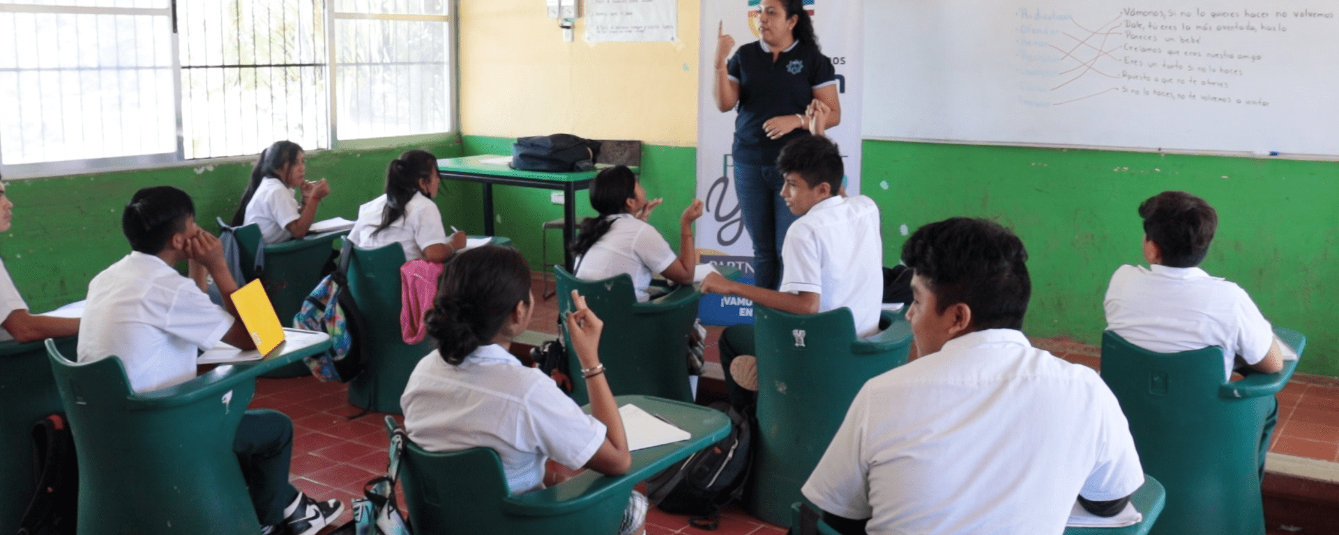 Muchos jóvenes están recibiendo referentes positivos del programa “Juventudes Yucatán” como es el caso de la alumna Bindi Rubí Pinto Hernández del tercer grado de secundaria de la “Escuela Secundaria Técnica No. 14” de Peto, quien compartió su sentir acerca de lo trabajado en clases: “Les diría a los jóvenes que no se rindan, por más dura que sea la situación, por más insegura o inseguro que te sientas, tú vas a poder. Si crees en ti, lo lograrás. A través de este programa he confirmado que deseo ser psicóloga y ayudar a la gente, ese es mi sueño, apoyarlos en confiar en sí mismos y saber que son mejores día tras día”.