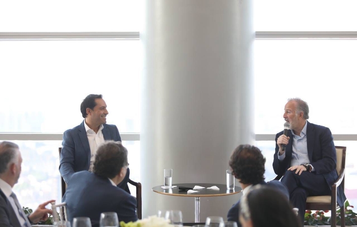 En el encuentro moderado por el ex secretario de Hacienda y Crédito Público y aspirante a la presidencia de México, José Antonio Meade Kuribreña, el Gobernador resaltó que estas acciones han permitido que Yucatán sea sede de importantes eventos nacionales e internacionales como la 86ª Convención Bancaria 2023 que se realizó en marzo pasado, así como 17ª Cumbre Mundial Premios Nobel de la Paz; Tianguis Turístico 2021; Smart City Expo LATAM Congress y la 13ª Reunión Anual del Grupo de Trabajo de Gobernadores sobre Clima y Bosques.