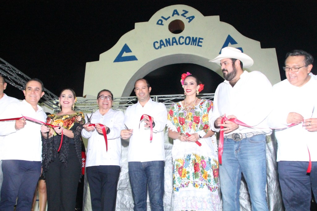 La plaza CANACO SERVYTUR en la feria X’matkuil abrió sus puertas para recibir a miles de visitantes que acudirán al recinto ferial del 10 de noviembre al 3 de diciembre; Levy Abraham Macari, presidente de la Cámara Nacional de Servicios y Turismo de Mérida realizó el corte de listón en compañía de los diputados Víctor Hugo Lozano Poveda y Estaban Abraham Macari y presidentes de otras Cámaras empresariales.