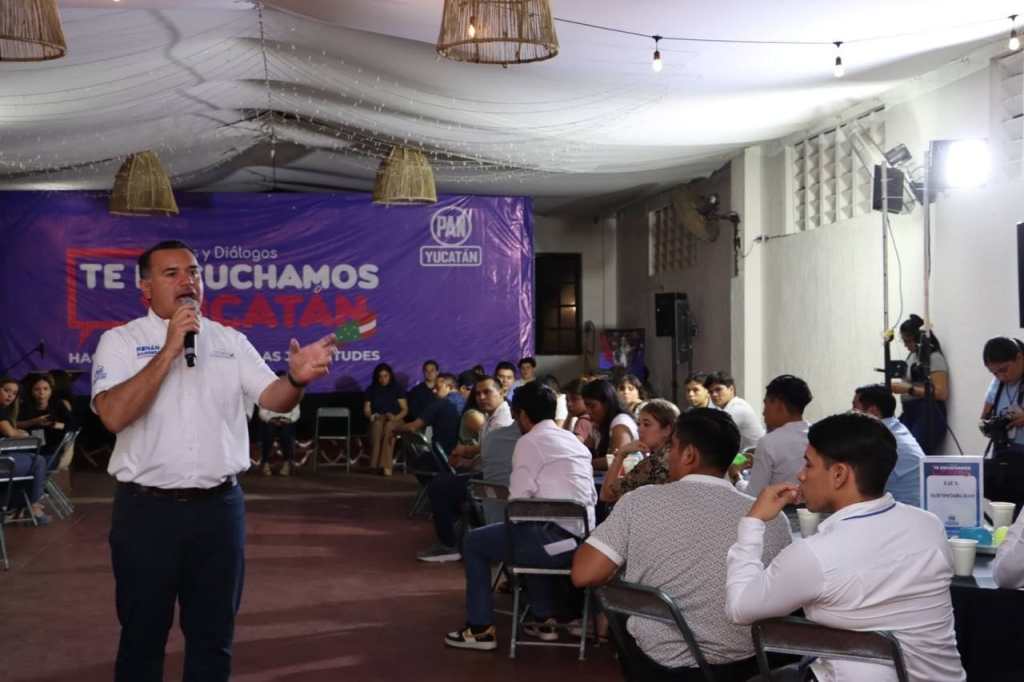 Mérida, Yucatán, a 15 de noviembre de 2023.- Con el foro “Te Escuchamos Yucatán” donde participaron más de 300 militantes panistas, el precandidato a la gubernatura del Estado por el Partido Acción Nacional (PAN), Renán Barrera Concha, platicó e incluyó las propuestas específicas e innovadoras de las y los jóvenes que participaron en esta actividad.