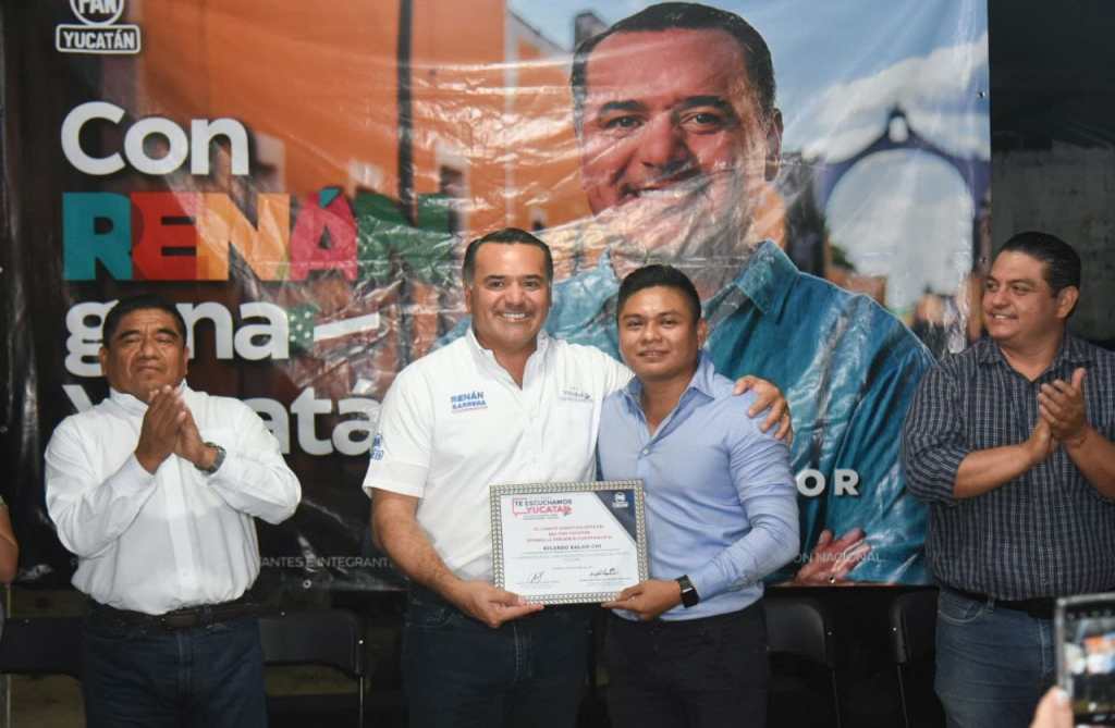 Poco antes de reunirse con las y los militantes panistas chemaitas, Renán Barrera realizó la entrega del reconocimiento como coordinador del equipo Yucatán en Chemax a Ricardo Balam, quien agradeció la confianza depositada para continuar el camino trazado para cuidar a Yucatán.
