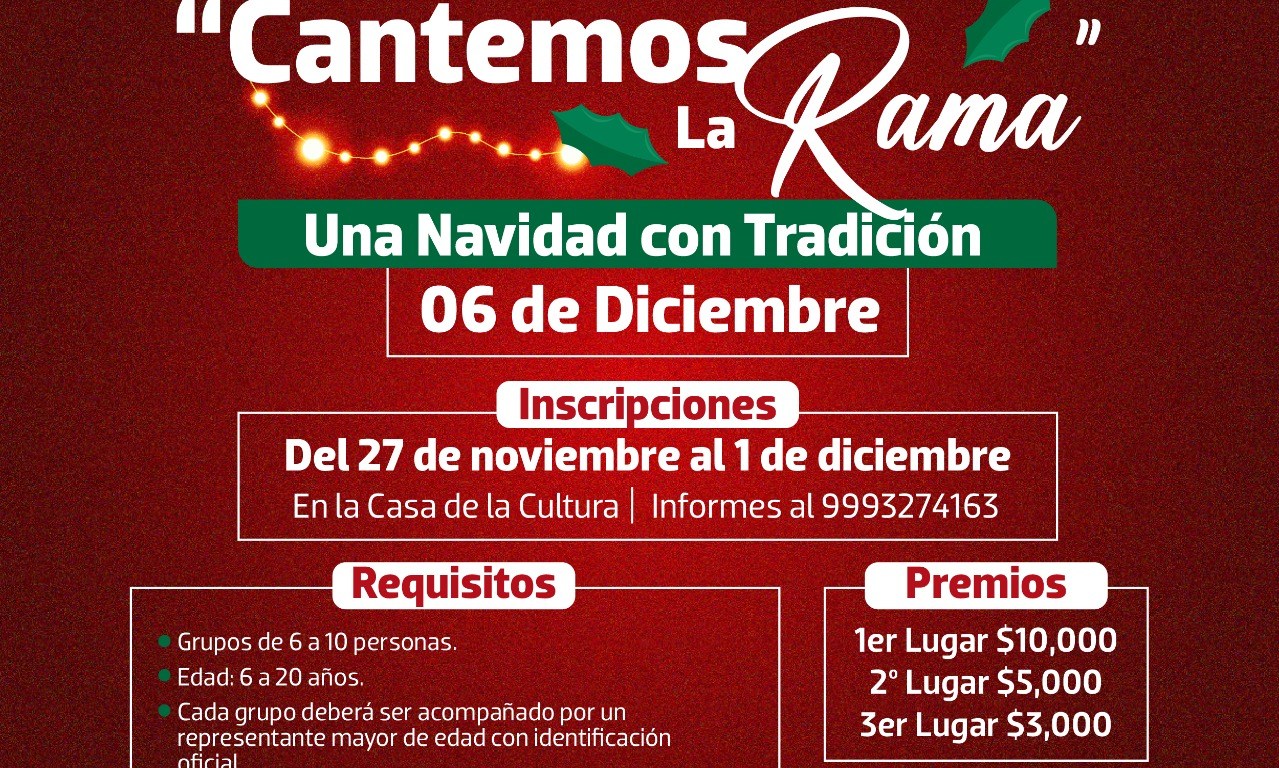 La convocatoria inició desde el lunes 27 de noviembre y concluirá mañana 1 de diciembre, por lo que autoridades municipales reiteran la invitación a la población a inscribirse en la Casa de la Cultura y cantar la rama el miércoles 6 de diciembre.