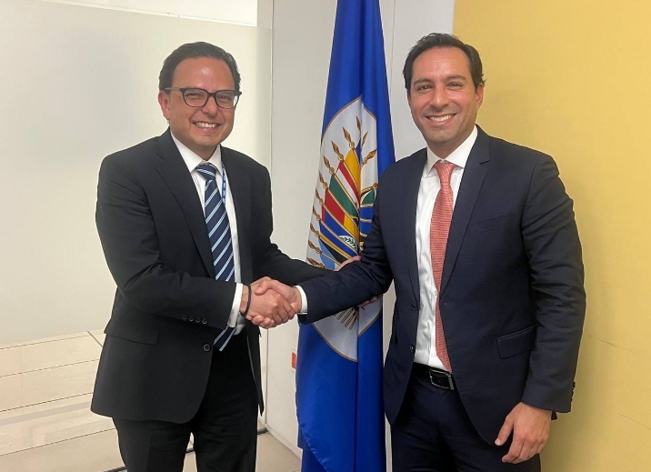 Finalmente, el Gobernador sostuvo una reunión de trabajo con el director del Departamento de Desarrollo Humano, Educación y Empleo (DHHEE) de la Organización de los Estados Americanos (OEA), Jesús Schucry Giacoman, a quien le expuso las ventajas competitivas de Yucatán en materia de educación, empoderamiento de la mujer y empleo, así como el trabajo que se está realizando para construir los cimientos del futuro de la entidad.