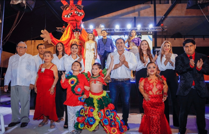 Progreso, Yucatán a 06 de diciembre de 2023. Anoche, el alcalde Julián Zacarías Curi, acompañado de integrantes del Comité del Carnaval de Progreso, presidido por Gabriela Alejandra Castilla Blanco, presentaron a quienes llevarán la alegría y el ritmo de las carnestolendas del jueves 1 al sábado 17 de febrero de 2024.
