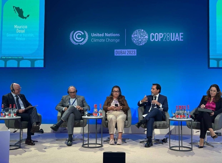 Emiratos Árabes Unidos, 6 de diciembre de 2023.- El Gobernador Mauricio Vila Dosal inició su participación en la Conferencia de las Naciones Unidas sobre el Cambio Climático 2023 (COP28) con un llamado a la comunidad internacional a sumarse a la lucha contra el cambio climático y la salvaguarda de la biodiversidad.