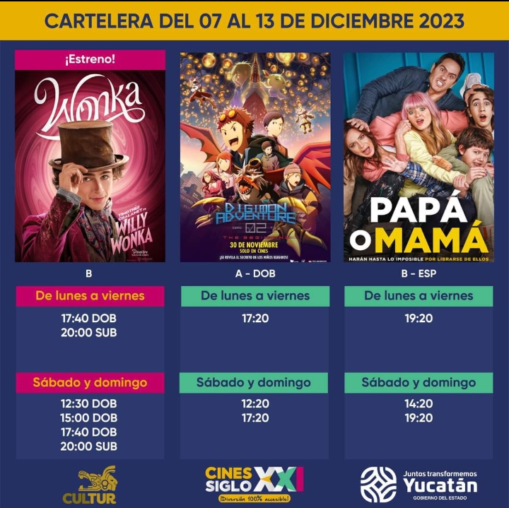Los #CinesSigloXXI 📽️ te traen a Thimotée Chalamet 🎩 y su propio chocolate #Wonka 🍫. Además tenemos el #preestreno de #Patos 🦆 y su viaje extraordinario! 🍿