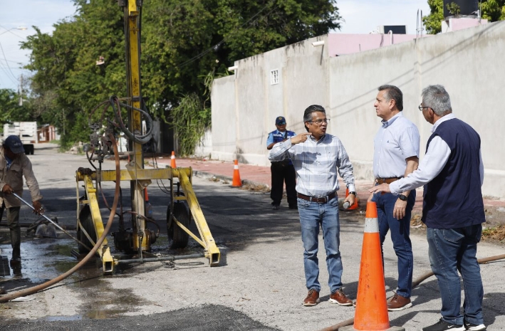 Asimismo, en compañía del director de Obras Públicas, David Loría Magdub, Ruz Castro supervisó los trabajos de bacheo realizados en las calles cercanas al parque de la Nueva Sambulá, con los que se dio una atención integral a esta zona de la ciudad.