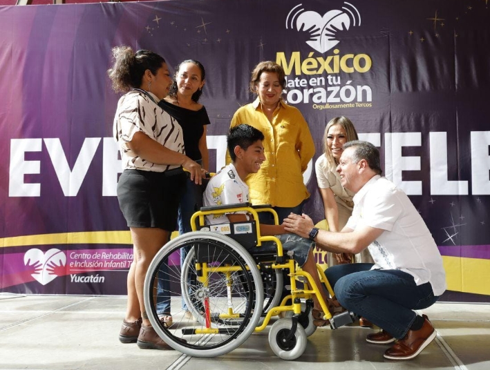 Mérida, Yucatán, 16 de diciembre de 2023.- En el marco del evento Teletón 2023, el Alcalde Alejandro Ruz Castro se sumó a esta causa y entregó a nombre del Ayuntamiento de Mérida, un donativo aprobado por Cabildo por un millón de pesos en apoyo a las niñas, niños y personas que reciben rehabilitación integral en los centros de atención de la fundación.