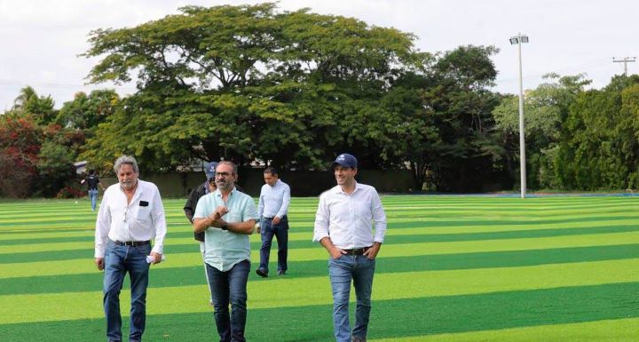Mérida, Yucatán, 27 de diciembre de 2023.- Los trabajos de modernización de 8 canchas de fútbol del Complejo Deportivo Kukulcán avanzan a buen ritmo, por lo que estarán listas próximamente para su entrega con el objetivo de otorgar un espacio digno y de calidad para practicar el deporte y este día fueron supervisadas por el Gobernador Mauricio Vila Dosal.