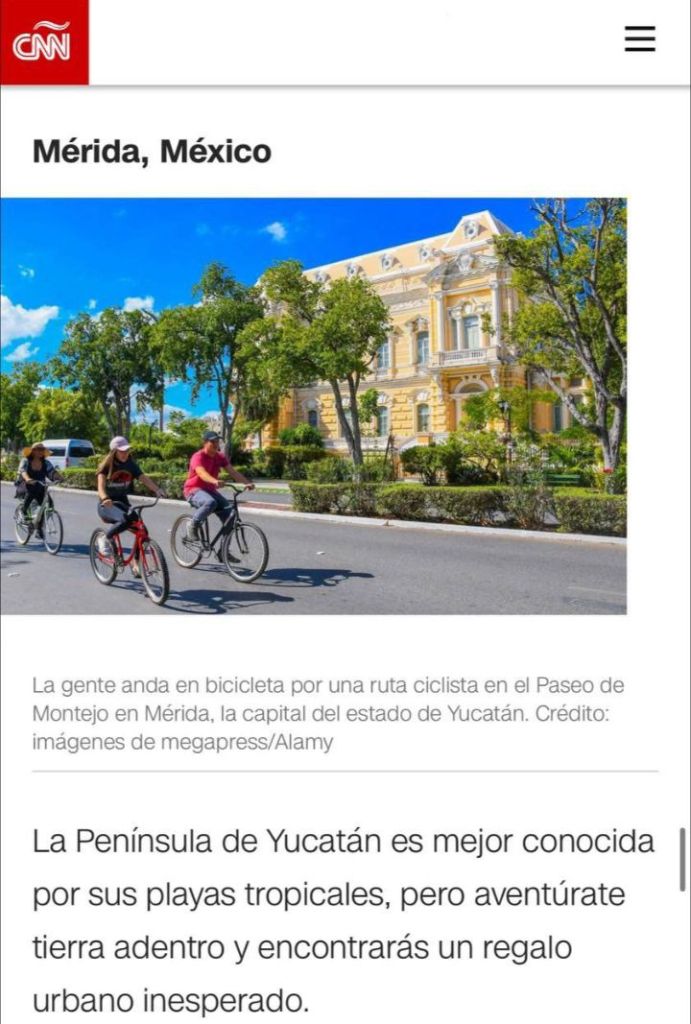 -Yucatán resalta en la lista de los 24 mejores lugares del mundo para visitar de CNN Travel, al ser recomendada su capital como destino idóneo junto con otras partes del mundo como Corea del Sur, Marruecos, Singapur, entre otros.