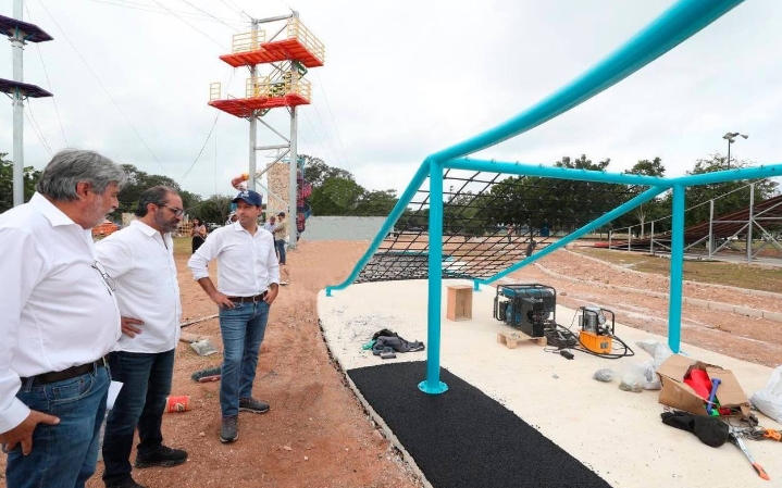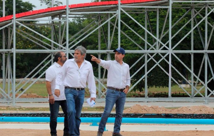 Acompañado del director general del Instituto para el Desarrollo y Certificación de la Infraestructura Física Educativa y Eléctrica de Yucatán (Idefeey), Luis Jorge Montalvo Duarte, Vila Dosal acudió a supervisar los avances de esta obra en la colonia San José Tecoh, que contribuirá a la igualdad de todas las zonas de la ciudad con un renovado lugar recreativo, que será logrado a través de una inversión histórica estatal de 180 millones de pesos.