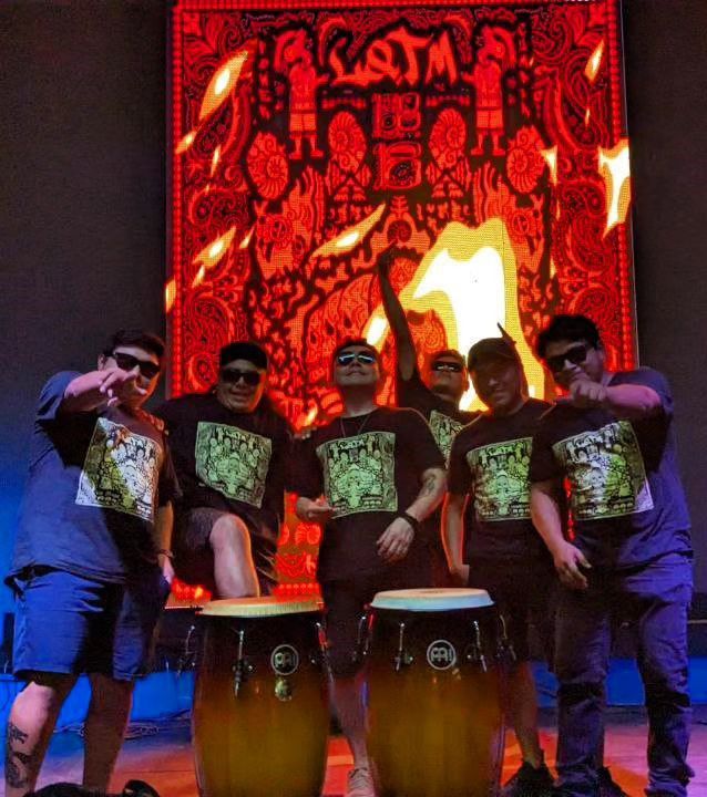congas), Samuel Collí (coros y batería) y Alan Plata (saxofón,