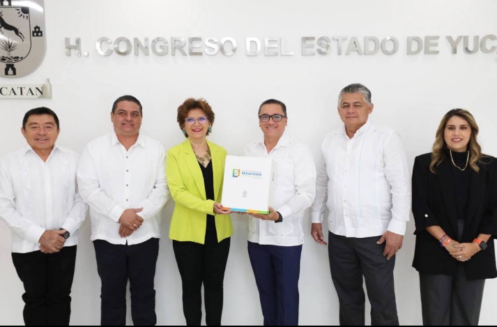Por instrucción de Vila Dosal, la titular de la Secretaría General de Gobierno (SGG), María Fritz Sierra, acompañada del consejero Jurídico del Estado, Yussif Heredia Fritz, acudió a la sede de Poder Legislativo local para entregar al presidente de la Junta de Gobierno y Coordinación Política del