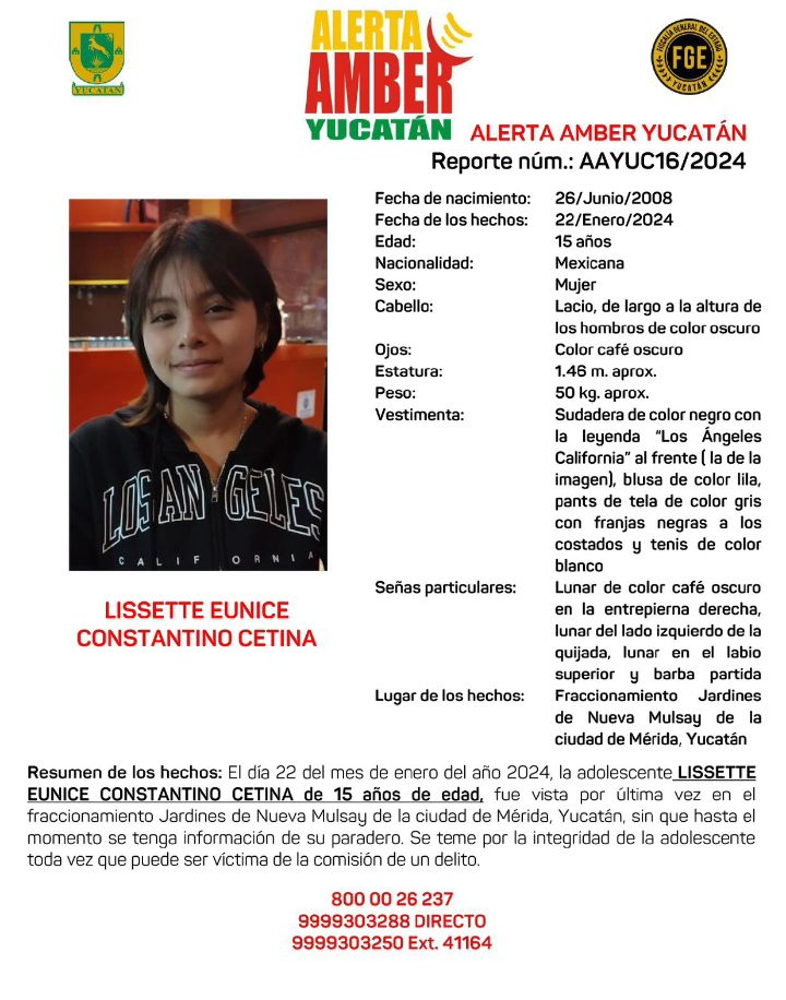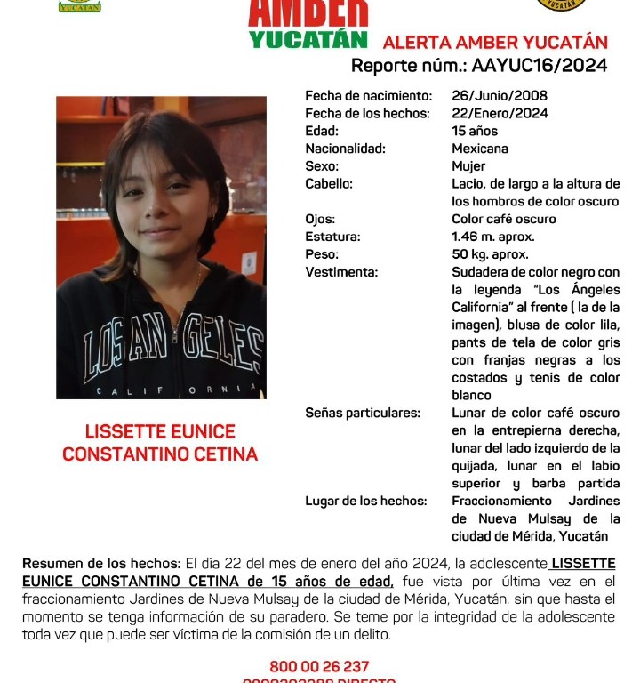 Fue vista por última vez este lunes 22 de enero en el fraccionamiento Jardines de Nueva #Mulsay en #Mérida, #Yucatán