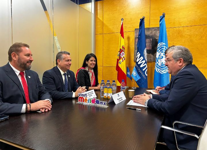 Una vez concluida la participación de Mérida en la FITUR 2024, se realizó una reunión con Lion Vilcu, director del Departamento de Miembros Afiliados de la Organización Mundial de Turismo (OMT) para conocer los temas de actualidad que se impulsan dentro de FITUR, así como refrendar el interés de seguir trabajando mediante la plataforma digital VisitMéridMx, afiliada desde 2021, para generar estrategias que capten más visitantes para la ciudad.
