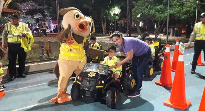 Los más pequeños, acompañados de sus mamás, papás y elementos de Servicios Viales, condujeron los carritos en la pista lúdica, muy atentos a las señales de tránsito e indicaciones de los uniformados.
