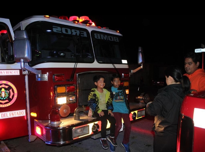 Bomberos y paramédicos mostraron el equipamiento de carros-tanque y ambulancias. Niñas, niños y jóvenes abordaron las unidades y también subieron a las motos del grupo especial GOERA.