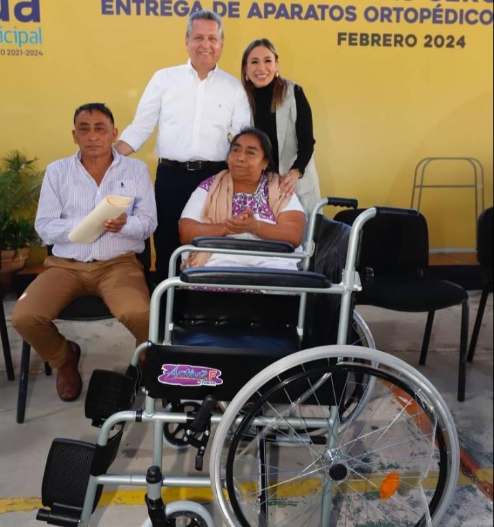 En la actividad, el Presidente Municipal y su esposa entregaron 14 aparatos ortopédicos a igual número de beneficiarios adultos mayores provenientes de las comisarías de San Ignacio Tesip, Xmatkuil y Molas.