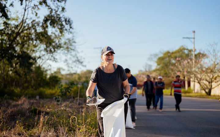 En equipo con voluntarios de organizaciones y ciudadanos en general, la Diputada Federal Cecilia Patrón Laviada participó en la comisaría de Temozón en el primer “plogging” que se realizó a invitación de la fundación Limpiemos Yucatán.