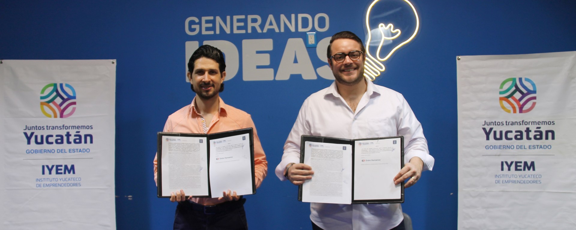 – El Instituto Yucateco de Emprendedores y la empresa Entre Humanos firmaron de un convenio para desarrollar actividades durante el Congreso Yucatán i6