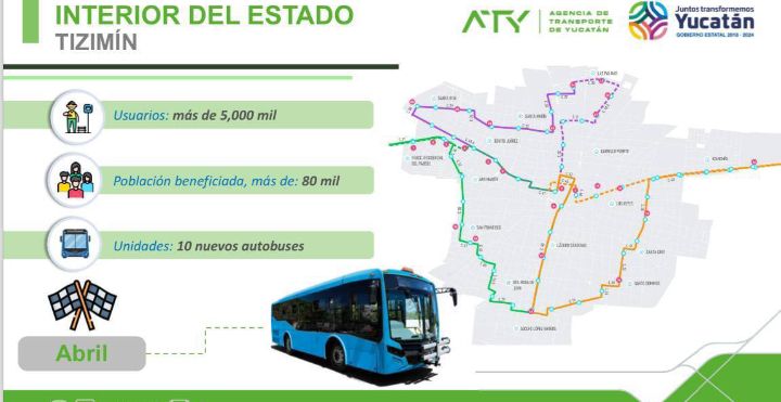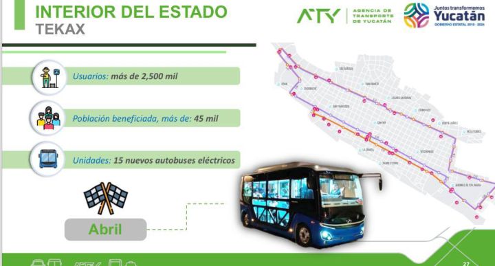 Por lo que toca a las nuevas rutas que entrarán en vigor en abril próximo en Tekax, serán 15 nuevos autobuses eléctricos que beneficiarán a más de 45 mil habitantes de esta zona.